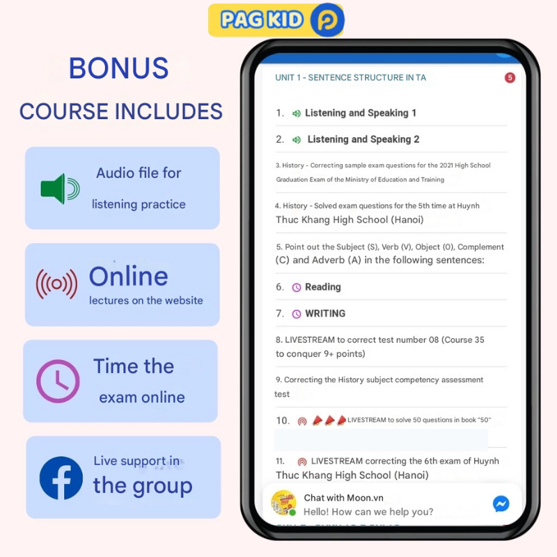 Tặng kèm flashcard học từ hoặc link học trực tuyến tùy theo phiên bản.