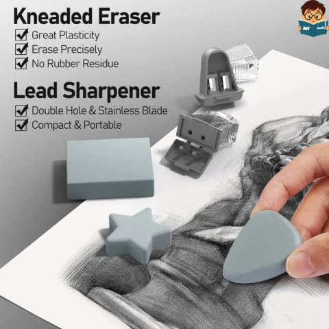 Bộ nghệ sĩ tinh tế bao gồm 3 chiếc bút chì cơ khí bằng kim loại (0.5, 0.7, 0.9mm), 3 chiếc bút chì chì 2.0 mm, 6 ống chì than 0.5, 0.7, và 0.9mm (60 chiếc / ống, HB), 4 ống 2.0mm (4B, 2B, HB, 2H, 12 chiếc / ống) than chì, 2 ống 12 màu than chì, 2 chiếc 4B tẩy mềm, 1 cục tẩy nhào, 2 cục mài chì, 9 chiếc hộp đựng than chì, 1 hộp đựng bút chì cơ khí bằng nhựa.