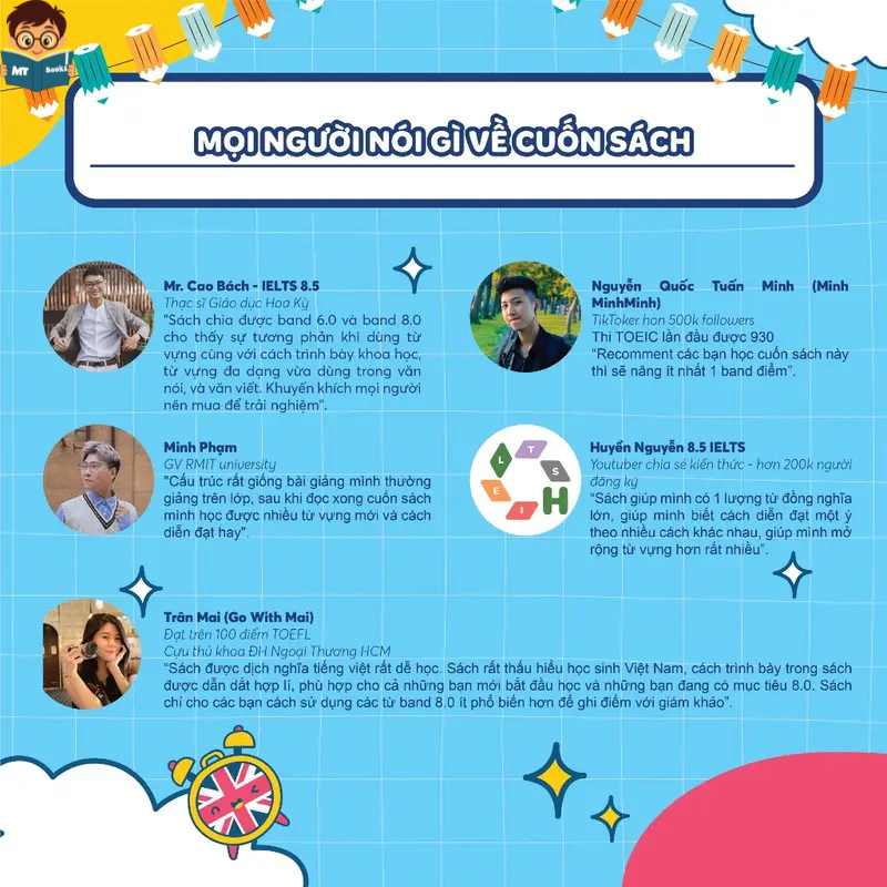 ✅ Phù hợp cho người học từ band 5.0+ đến 8.0+ – tự học hoặc luyện thi đều hiệu quả.