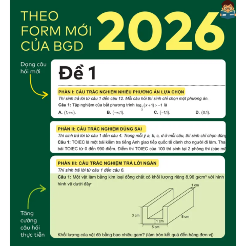 ✅ Bám sát cấu trúc đề thi mới 2026 – Giúp học sinh làm quen sớm với dạng đề và cách ra câu hỏi theo định hướng mới của Bộ GD&ĐT.