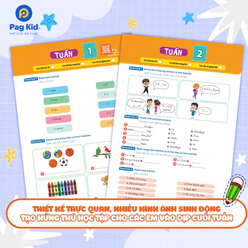 Bài tập được thiết kế theo từng tuần học, giúp học sinh luyện tập song song với chương trình trên lớp.
