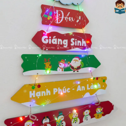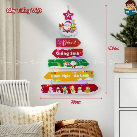 – Thiết kế Độc Đáo: Cây thông Noel được treo trên tường với vật liệu chính là gỗ, mang lại vẻ đẹp tự nhiên và gần gũi.