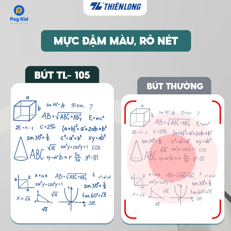 Mực bền màu, trôi chảy, thích hợp dùng để ghi chép, làm bài, ký tên.