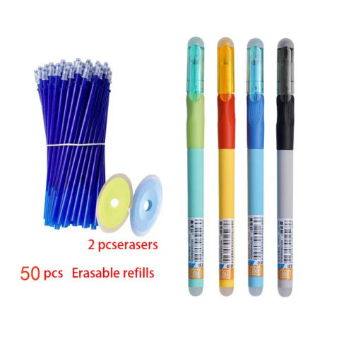 Combo 4 Bút Gel Xóa Được + Tặng 50 Ngòi + 2 Tẩy Xóa Nhiệt – lựa chọn hoàn hảo cho học sinh, sinh viên và dân văn phòng yêu thích sự tiện lợi, gọn gàng và tiết kiệm!