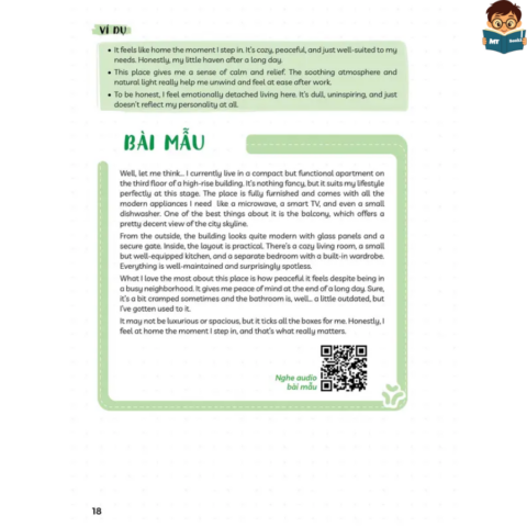 ✅ Bài mẫu band cao chuẩn chỉnh, kèm bản dịch và mã QR nghe audio – giúp luyện phát âm và ngữ điệu chuẩn.