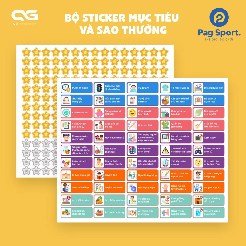 ⭐ BẢNG MỤC TIÊU CHO TRẺ – STICKERS RÈN KỶ LUẬT TỰ GIÁC